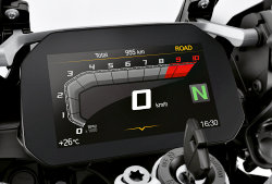 Ce trail est équipé des derniers systèmes d’aide à la conduite, tels que l’Integral ABS Pro et le DTC (Dynamic Traction Control), qui agissent pour plus de finesse lorsque la moto est penchée ou encore l’aide aux démarrages en côte HSC (Hill Start Control)